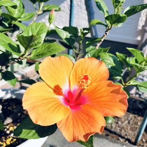 2枚目の投稿です。 🌺ちゃんが元気に2輪咲いて いてパワーもらえました💪✨ ☔が降ってるので軒下で 輝いてます✨✨✨