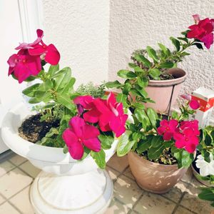 おはようございます☺️ 朝少し暑さが和らいだと 思ったら束の間で暑くなりました☀ ニチニチソウちゃんが元気 いっぱいで茎が伸びてます✨ 濃いピンクと白をupしました☺️💕🤍 アメリカンブルーにも肥料 あげました💙💙💙 🌺ちゃんまた可愛く咲いてます🧡🧡🧡 朝から癒やしと元気もらえました✨