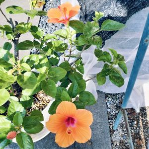 おはようございます😃 今日も猛暑予報で暑いです☀ 🌺ちゃんが2輪咲きました🧡 朝から元気もらえました💪✨ 昨年夏越しはしましたが花が 咲かなかったシクラメンさん まだ🌿をつけて頑張ってます💪💪💪 また夏越しに挑戦です😉✨ 猛暑の中大丈夫かな?😣 千日紅とジニアパワー素晴らしい💕💕💕 今日も熱中症に気をつけましょう🧋🍀💕😉🍉