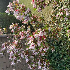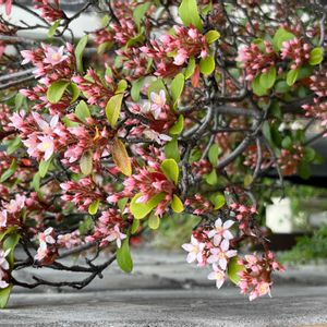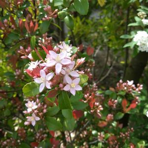おそらくシャリンバイ。ピンク色のシャリンバイは初見でした😊よくみる白いシャリンバイといっしょにどうぞ🤗
