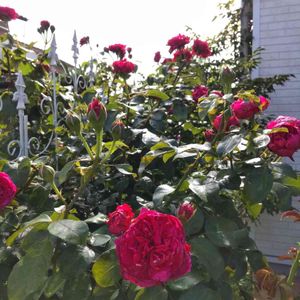 梅雨も明け 陽射しガンガンです。 一番花が調子悪いと、二番花は、 元気ですね🌹 レッドレオナルドさんが頑張って 咲いてます🤗💖 熱中症注意🥵‼️