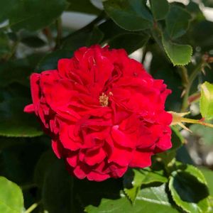 【🌹水曜ローズショー🌹】 連日暑いけど…情熱🔥の赤色が庭で咲いております♪😊 クシュクシュで、なに咲きか良く分からないですが…ま、開花してくれただけ、良しとしましょう!(๑•̀ㅂ•́)و✧