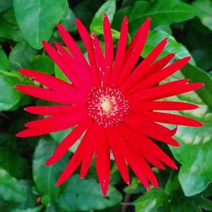 こんにちは☔ 真っ赤なガーベラ 原色のお花は元気が出て良いですね。