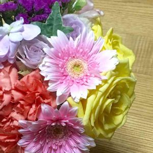 ガーベラアレンジ💕 娘:これは捨てていいよね 母:ダメ〜 レトロな感じの缶💕