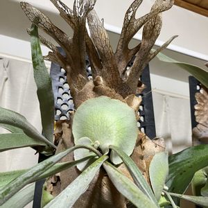 去年11月にやっと出た貯水葉は、案の定寒い間成長が止まっていた。暖かくなってきてやっと活動再開した。でもきっと成長不良でしょうね😢 子株3つも湧いてる😃😆