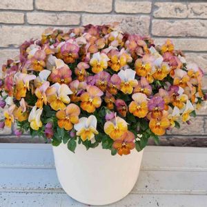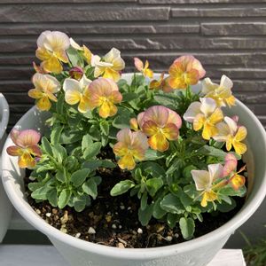 ビオラ アプリコットアンティーク🧡 おしゃれなお色のこの子、なぜか横に横に育ちました😳 そして最近までなかなか花が咲きませんでした💦 どうなる事かと思いましたが、今はこんなに綺麗に満開に😊✨️ 美しい花で玄関前を彩ってくれています💕