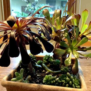 おはようございます❣️ 黒法師とリトルゼムが仲間入りしたので、昨日の鉢に植えました。ひとつには黒法師( 冬 )の表示が。冬、夏、と種類があるのかな?冬の方が少し黒っぽい感じです。 いつもの様に選べる状況に無く、この2点しか無かったので即持ち帰りとなりました😊