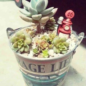 CREMNOSEDUM CROCODAILE クロコダイルと聞くと怖い感じがするけど… 名前のわりにはプリプリ可愛い子(*^^*) マーキュリーのブリキバケツがいい感じに似合ってる。゚+.( °∀°)゚+.゚ この前UPしたリトルゼムさんも モリモリして来ました(❁︎´ω`❁︎) リトルゼムもクロコダイルと同じクレムノセダムなんだね〜🎶