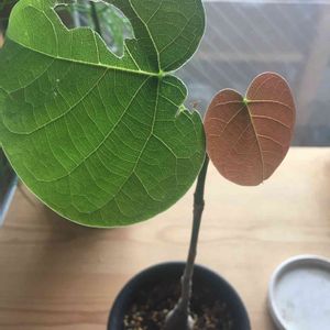 3枚目の葉っぱが出てきました🙌 新芽は ピッカピカ👩🦲の ツッヤツヤ🧡 色も赤っぽくてかわいいの〜