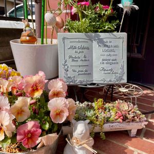 玄関前をイースター風に🐰🥚 くすみピンクに一目惚れして購入したパンジーは満開! 多肉達も太陽の光を浴びて元気そうです♪ 奥に見えるのはオリーブの赤ちゃん!小さな苗木なので早く大きくなりますように!