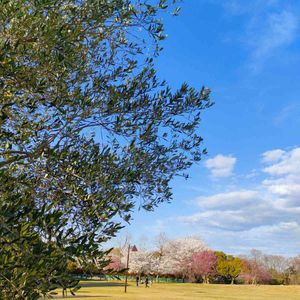 県の花 オリーブ🌿と 染井吉野 陽光桜と青空💎