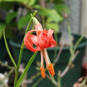 ノヒメユリ(野姫百合)❣️。 花弁の直径2.5センチくらいでしょうか❗。ともかく小さく、可愛い‼️。天候の悪さが花びらをいためてますが、可憐でいて、艶やかな風情、植物の世界は楽しいし、妖しい😁。 今年初めて咲いてくれました。