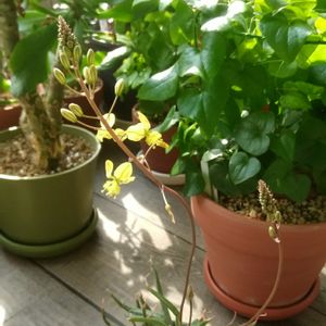 週末プラントハントの旅、収穫報告、ザファーム編🚗🔫 ・セルリア レモンハニー ・チャスマンティウム リバーミスト ・フィカス パルメリー ・ブルビネ マルガレサエ ・パキポディウム デンシフローラム ・パキポディウム ロスラーツム カクチペス ・パキポディウム サンデルシー セルリアはもう買わないと決めたはずだったのに。夏越しは半分諦めつつ、花を楽しみます。ブルビネもチャスマンティウムも初めて育てます。まだまだ知らない植物はありますね。 ■チャスマンティウム リバーミスト Chasmanthiumu latifolium "River Mist" ・イネ科 宿根草 通称:ワイルドオーツ、小判草 草丈:60~80cm リバーミストは2009年オランダのプランタリウムショウで金賞を受賞した品種です。 小判草ではこれまでに無かったコンパクトで笹の葉のような斑入り葉です。一般の小判草同様夏頃に小判草特有の穂が出現し、寒くなる迄観賞できます。穂の色は一般の小判草とは異なり淡い緑色で、徐々に穂先がピンク色になります。耐暑性は非常に強く、また、冬は地上部が枯れますが春には新芽が吹いてきます。 品種管理:㈱プラントネットワーク