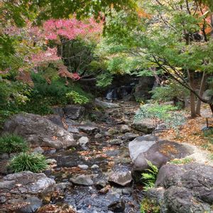 御嶽山を模した築山から 木曽川が流れている様に、流れの水が 注ぎ込む池を『伊勢湾』に見立ててレイアウト されている池泉回遊式日本庭園です🎵 敷地面積 約3.7㌶ 名古屋市内 最大級の規模を誇る 日本庭園🌿 として平成 3年 4月 14日に 開園しています🍁🍂✨ 木曽川は長良川・揖斐川と共に 伊勢湾に注いでいます🍁✨ 木曽三川は、東から西方に 木曽川・長良川・揖斐川です 11月 27日 12時 35分
