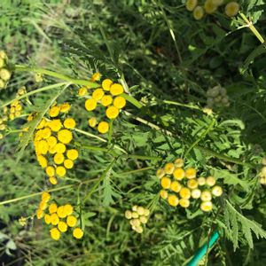 おはようございます🌞 タンジーです💛 和名はヨモギギク💛 昨日タイムラインにたまたま流れてきて、この名前がわかりました。 防虫剤や染色用ハーブとも使われてるみたいです 💛 1cmほどの丸い黄色い花が可愛かったです💛 (7月27日少し遠くのボランティア花壇にて)