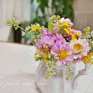 台風前に、ノッポになったダリアをカットして、ブーケにしてみました♡ॢ*‧˚
