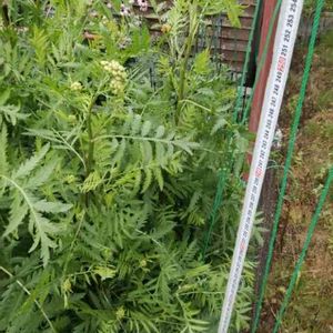 高さ3m位から15㎝位に剪定して花壇中央から端側に植え替えたタンジー