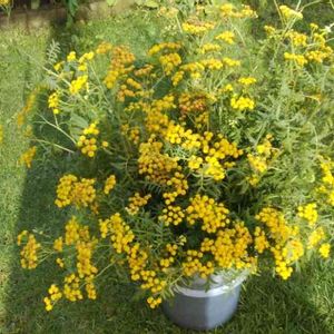 まだ通ってくるハチに暫く残しておく、一株から剪定したタンジー
