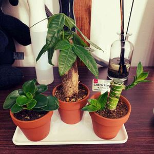 ペアをつくって窓辺へ。 本を読んでいたら、新しく出たパキラのちいさい葉が丸まるのは水不足、と書いてあった。セラミスが乾いてからやってるんだけど、もうちょっと頻度を上げるべきだろうか。。。