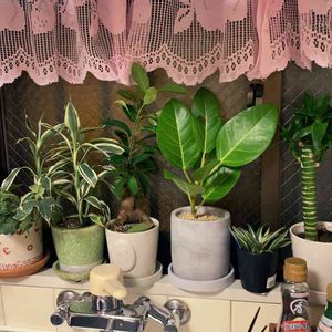 キッチンにも可愛い子ちゃん達います😌 てかよく考えたら全てダイソーで 揃えたやつです😂 ダイソーで売られている観葉植物達ですが 元気に育ってます😊 ガジュマルの育ちが1番目に見えてわかります☺️