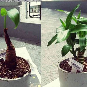 3COINSでキングバンブー買ってきました☺✨さっそく植え替えて、息子が水やりしてくれました~土あふれてる😂昨日植え替えた実生パキラ4兄弟とポトスのライムも水やり~✨