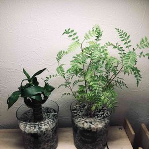 植え替え完了🤗 センペル氏をはじめてお迎えしました (なんかどきどきする😳) 1号鉢のサボテンもかわゆい💓 観葉植物はハイドロボールに挑戦! ガラス器は根腐れ防止のケイ酸塩白土を入れました。 はじめてやることはなお楽しい❣️ みんないい感じだね☺️