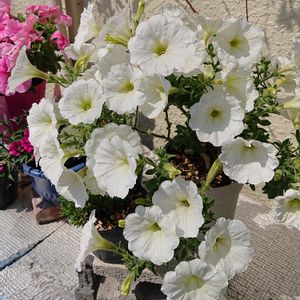 まるで。。。 ご近所さんち と 我が家の 日当たり具合のよう。。。 今朝の ペチュニア♪