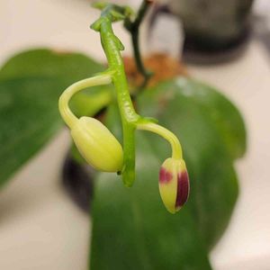 Phal.Yaphon Christmasさん😊 人からいただいたもので、花見本も見たことない😅我が家にきて3年目にして、急にやる気ある根っこを勝手に奔放に伸ばし始め、今見たら初めての花芽2つ確認🙌さてどんな花が咲くかな😳咲くまでのお楽しみ🌿