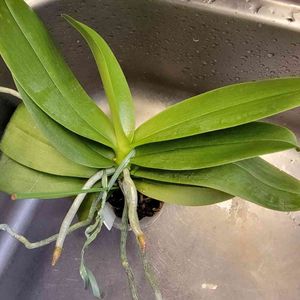 職場近くのお宅から 贈呈品の胡蝶蘭アマビリスの花後の株を お世話ができないとの事でいただきました。 ボリボットの中の水苔はかなりの水分で 3ポットのうち、1ポットは葉が全て落ちていました。゚(゚´Д`゚)゚。 お昼休憩にすぐさまポリポットから抜き水苔を全て取り除き、簡単に根の整理✂️もしました。 そして、一株は母ンチに♪( ´▽`) 自宅で再度、根の整理、 そして殺菌消毒です。 優しい流水で丁寧に洗い流し、 1日乾燥させました。 戻して準備しておいた水苔で 優しく優しく包んで素焼鉢に、きゅきゅっと入れて完成です🦋 元気に育ってくれますように💚✨