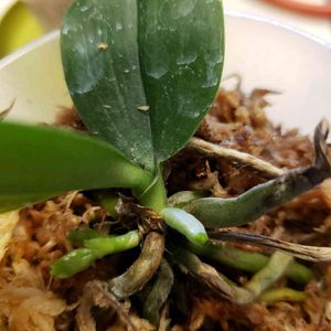 お!根だけがやたらに元気すぎるPhal.Napoleonさん😊にようやく花芽を発見😆🌿✨ 、、、このまま根だけモジャモジャな観葉植物になり果てるのを危惧していたけれどようやく😢✨🌿