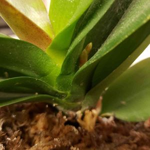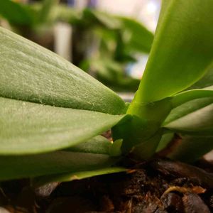 Phal.Anna-Larati Soekardiさん😊 今年出た葉が徒長ぎみになったり、秋に最新の葉を真ん中からパキッと折ってしまったり、、、😅散々な育てられ方をしているこの子ですが、小さな花芽をつけてくれました🙌ありがとう😳🌿