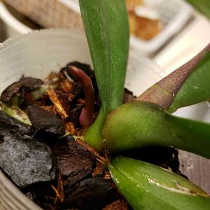 Phal.venosa ‘CH’さん😊 やったら長い花茎を3本伸ばしていて2本には蕾が確認できたけど、一個は高芽だった😅立派に小さな葉っぱと根をだしてきた😳🌿この子とかプルケラとかは、子株よく出すよなぁ。嬉しいけど、、、本当は高芽より蕾希望😳💕8ヶ月増えちゃうから、、、😅💦