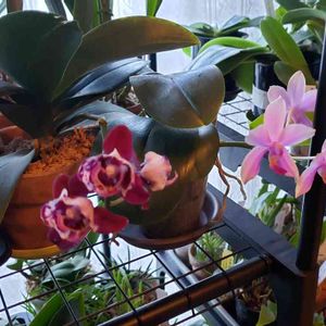 Phal.Purple Martinさん😊 子株が2つ発生していたので昨晩株分け。 胴切りを2箇所で行い3株に増殖しました。🌿🌿🌿