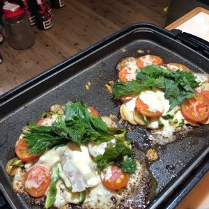お昼ご飯 ジャガイモ台のピザ スライスジャガイモ、小麦粉振りかけ ピーマン トマト🍅 ベーコン 大葉 溶けるチーズ スライスジャガイモを円形に敷き込む。 少し小麦粉を茶漉しでふりかける。 ベーコンを乗せる。 ジャガイモが焼けたら裏返す。 ピーマン、トマト、ベーコン、溶けるチーズ、蓋をしてチーズが溶けたら、大葉又はバジルを乗せる。 塩気は、ベーコンとチーズで充分。 好みでタバスコなど。