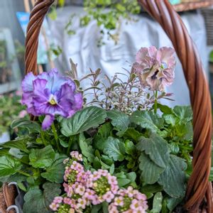 パルプンテ(右のビオラ)もお迎え✨🦋✨ ビロード調で美しい💞 色変わりするかな⁉️しないかな⁉️ したら嬉しいな🥰 一緒に寄せたガーデンシクラメンはロージーグローで綺麗な薄桜色がちょっと分かりにくくて残念🥲