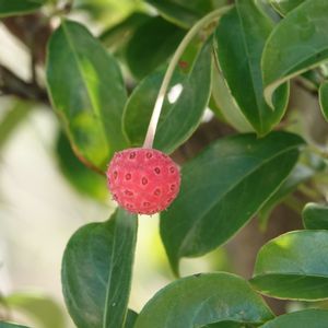 高さ1、5m位の木なのに、 たくさんの赤い実がなっています。 山法師の実のようです。 こんなに小さい木に たくさんの花が咲いたのですね 山法師じゃないのかな…🤔