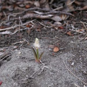 何に見えるでしょうか? ツルボです。 葉っぱが一緒なのを見るのは初めてかも。 数㌢の小さな小さなチューリップのよう。 秘密の花園のツルボの花は遅目だけど早朝、確認に。 未だ全体的には5枚目のような一面、去年の花がらを残したままの姿でしたが、その中に幾つかお顔を出していました。 未だ、あのピンク色すら確認出来ないけど間違いなくツルボです。 刈られない駐車場の一画。 在りのままの野草の1年を見られるのは 奇跡のようです。
