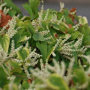 歩道の植え込みに覆い被さるようにヤマノイモが満開! 下の植え込みは全く見えず、トベラでしょうか もう少ししたら、零余子(むかご)がいっぱい採れるかな