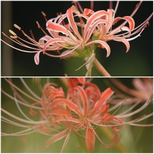 白い縁取りの彼岸花 初めて見ました 枯れた花かな、とも思いましたがこの後又、別な場所で! 空き地に自然に自由に🎵 丈が15~20cmほどしかありません