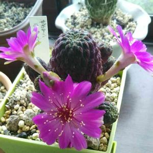 おはようございます! スルコレブチア属:ラウシー接ぎ木 一斉開花しました! 接ぎ木でない方は、咲く気配無し、パワーの違いかな!