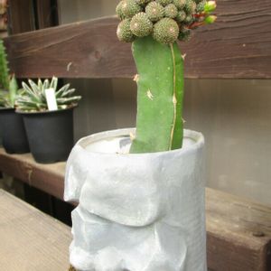 1月にジョイフルでみつけて 岩造さんの チョンマゲになってた接木のラウシー クールな岩造さんだったのに なにやら 蕾!? まるで チョンマゲに玉かんざし~🎆 そんなに 何本もさして 花魁ですか?😨 ま、花が終われば また クールな武士に 戻ることでしょう👍 戻らないってことも あり?😁