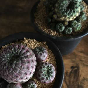 こんばんは(^^) 同時期に同じ位の大きさの子達を 群生から分けた紫ラウシーさんˆˆ Sulcorebutia rauschii 水やり環境は上の子達をやる時に 少しづつかかる程度。 水やり環境も日当たりも同じ環境で 明らかに素焼鉢の子達だけずんぐりむっくり(*´`) 化粧土もそれぞれ富士砂、ゼオライト、硬質赤玉と違うので一概には言えませんが 水分の蒸発が早い分、ゆっくり育ってくれている様子です \( ´˘`)/ とは言え、 テラコッタ鉢植え替えた アルテシマさんの水やり頻度が激しくて 困っていますがꉂꉂ(ᵔᗜᵔ*)あはは