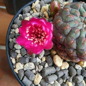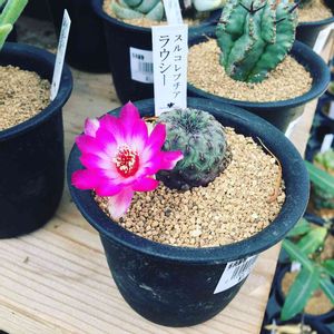 また綺麗なサボテンの花を紹介しますね。 スルコレブチア ラウシー 写真のような肌が紫のタイプと緑の肌のタイプがあり、中間的な個体もあるので個性的です。