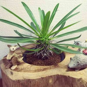 パキポディウム・ ホロンベンセ (Pachypodium horombense) マダガスカル原産のホロン君 真夏は直射日光ガンガン、雨☔️ざあざあの管理でした😄 今は落葉してコロリンになりチャーミングな姿となりました😁 厳ついトゲもアンバランスで魅力的😙 キョウチクトウ科 標高400~900mの岩上に自生