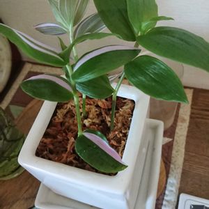 トラディスカンティア(トラディスカンチア・トラデスカンチア)白絹姫 多肉永遠さんでコノフィツム サマーレッド2頭立てを2個購入したおまけにいただいたものを植え付けました🌱 トラディスカンティアはGSさんで購入した斑入りのものを育てていますが(テーブルプランツ)、もけもけしていません 最初は驚きましたが、見慣れてくるともけもけが可愛らしく見えてくるのが不思議です🥰