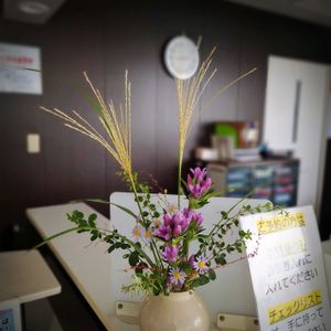 病院の生け花 時折吹く風に秋の訪れ感じる今日この頃 生け花はすっかり秋の様相で🌾🍁🍂