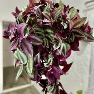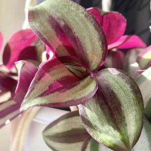 トラディスカンティア🩷 昨日の西日の当たった時と比べて、朝日に透けて紫色が綺麗に出た葉裏🌿