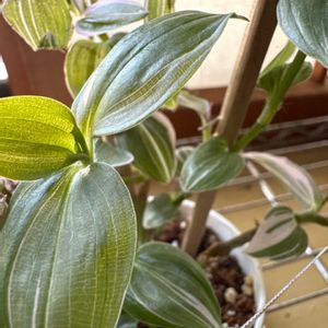 トラディスカンティア (シマムラサキツユクサ) 花言葉 ひとときの幸せ 未だ大丈夫だろうと 玄関先に置いていたら… 零下の気温には耐えられず 殆ど色が変色してしまったのに🥀 部屋に入れたら大分回復しました❣️ 成長が早くて、あっという間に 長く垂れ下がっているので 短く切って寄せ植えに 使用するつもりです😊 未だお花を見ていないので 肥料不足だったのかも…
