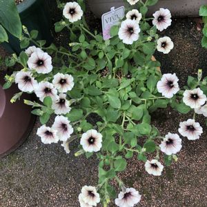 左ペチュニアVIVA ダブルホワイトバイン 右ペチュニア シャトー 購入後、切り戻しをしてやっと開花し始めたVIVAです。 隣のシャトーに比べて花径がかなり大きいです。 VIVAももう少し紫がかっていたのでこれから色がでてくるのかなと思います。 シャトーは株がかなり大きくなりました。 梅雨前に1度切り戻しをしないといけないですね。