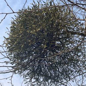 ヤドリギ 宿り木 ヤドリギ科 (ビャクダン科) 雌雄異株 常緑広葉樹の小低木 牧野植物園 1/20 おはようございます 落葉樹が葉を落とすとヤドリギは目立ちます💚 今回植物園ではヤドリギの大きくなったのは見当たりませんでした💚 大きくなると取り除かれてるのかしら⁉️ こちらが一番大きく育ってましたよ💚 まだ小さな芽立ちが所々に顔を出していて、あっ ここにも💚って見つけましたよ💚 光合成も行うようで半寄生の植物のようですね💚 植物園には雌雄どちらかの木しかいなくて実は付けないとの事(すみません聞き取れませんでした)🙏💦 ヤドリギの種類も忘れてしまいました🙏💦💚